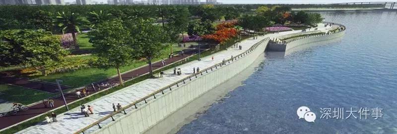 东段即为深圳湾滨海公园,长9.6公里,分为A、B、C三个区域。A区从红树林海滨生态公园西侧至大沙河,建有中湾阅海广场、海韵公园、白鹭坡、北湾鹭港和小沙山。西段则为深圳湾滨海休闲带规划中的D、E、F、G段,设计规划在高密度老建成区,通过“退城还海”,构建市民参与性更强的绿色休闲空间。