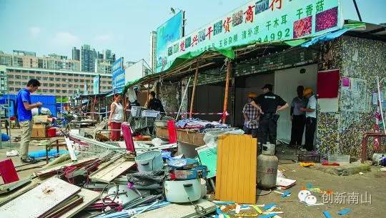 太子山农贸市场内临时建筑于1999年报建,按相关规定早已超过有效使用年限,属违法建筑。今年4月底,南山区相关部门对该市场进行彻底清拆,其间未发生一起群体性事件,实现和谐拆除。拆除后,对于市场原有商户,分流至南山区其他农贸市场,而周边居民日常的买菜需求。