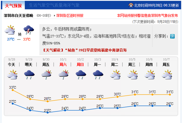 深圳发布台风白色预警 "鲇鱼"将在48小时内影响深圳