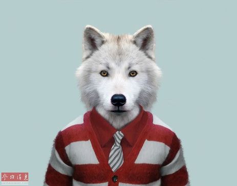 这些人类服装穿在动物身上看上去毫无违和感,仿佛就是为它们量身定做的。图为北极狼。