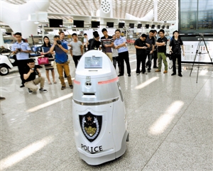 深圳新闻网讯 记者昨日获悉,国内公安首台智能安保机器人AnBot(“深圳小安”)近日亮相深圳机场T3航站楼。据悉,“深圳小安”具备自主巡逻、人像识别、智能服务、突发应对等四大应用功能,成为机场日常巡逻防控的又一新增力量。