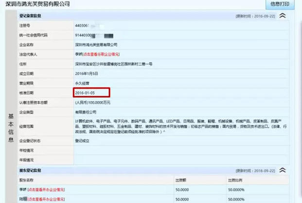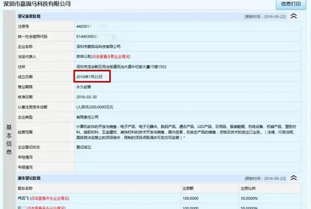 这些突然冒出来的公司在福田、宝安、龙华等五个区都有分布,注册时间也集中在今年1月份。仅在今年1月5日,就有3家公司同时分别在深圳市市场监督管理局注册成立。