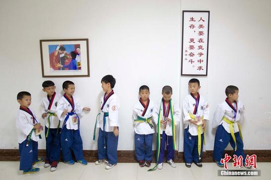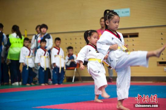 萌娃们齐打跆拳道。
