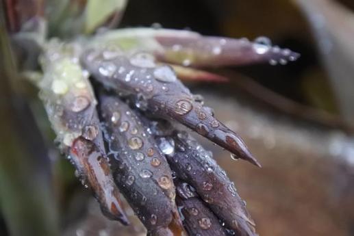 ↑10月8日,黑龙江牡丹江市北山公园的植物挂着晶莹剔透的露珠。