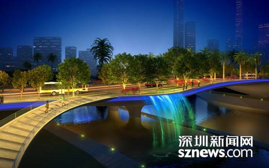 该项目在桥梁结构布局上进行了亲水为主题的人性化设计,桥上水域部分设计以灯光喷泉,为桥梁增添一道水光陆离的风景。桥墩下部周边设置亲水池,游人可濯足戏水、散心休闲,充分展现桥梁“水性、人本”的设计特点。