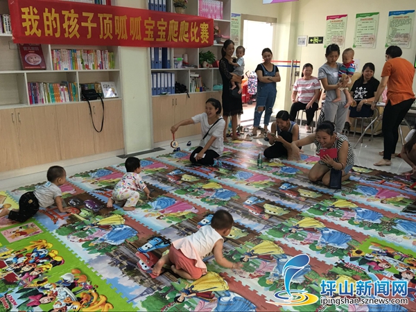 赛前,社区生育文化中心科学育儿指导员向宝妈们普及了一次宝宝辅食知识,让宝妈们获益良多。比赛开始后,五组家庭同时进行,宝妈蹲在爬行垫的一头,一个个7个月到一岁的小宝宝在妈妈的指导下,从爬行垫的这头奋力向妈妈爬去,样子憨态可掬。爬爬比赛以宝宝爬行时间统计成绩,评出了一二三等奖。