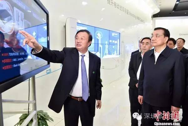 李克强总理在华为总裁任正非陪同下,考察华为公司最新技术实验室、“专利墙”及终端产品。李克强听取了华为在无线网、终端、专利、股权激励等方面的介绍,对于华为在全球取得的成绩表示赞许,并称“华为大有作为”。他还肯定了华为在激励制度上的做法,称“没有制度创新,科技创新就无从依附”。