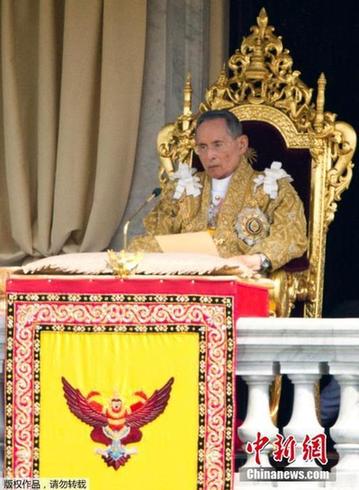 当地时间10月13日,泰国国王普密蓬在曼谷诗里拉吉医院(Siriraj hospital)去世,享年88岁。普密蓬国王于1946年6月9日登基,到目前为止在位已达70年,创世界历史之最。(资料图)