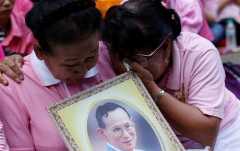 在宣布普密蓬国王去世前,泰国民众在大皇宫内为普密蓬国王祈福。