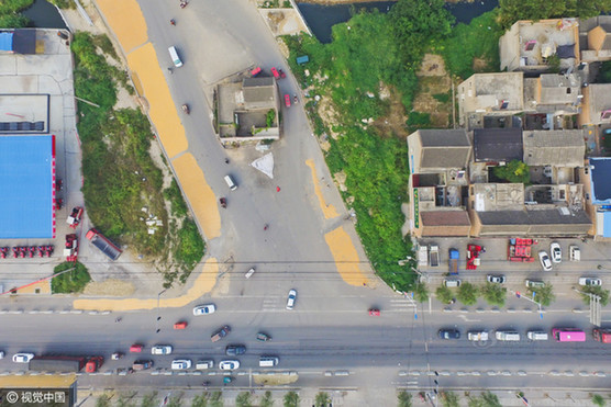 航拍河南道路“钉子户” 车辆均绕行