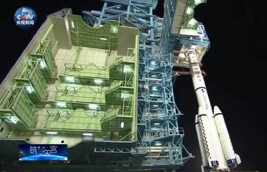 神舟十一号飞船进入太空后,与天宫二号空间实验室进行交会对接,形成组合体飞行30天,这也将是我国迄今为止时间最长的一次载人飞行。图为发射塔架打开中。