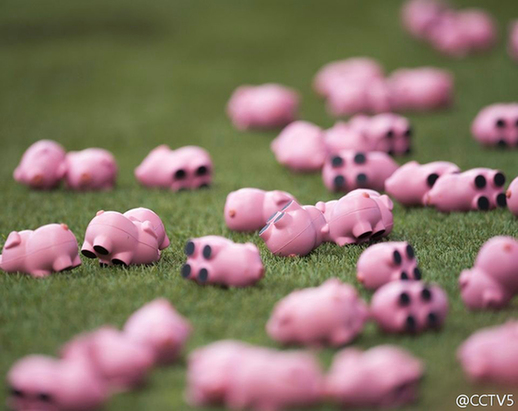 英甲赛场变“猪圈” 球迷投掷3000多只玩具小猪
