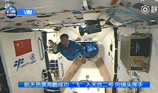 航天员进入天宫二号画面