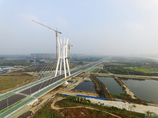 10月18日,河南省郑州市,一座即将完工的跨河桥因酷似“酒杯”引起了许多网友的热议。子君/视觉中国