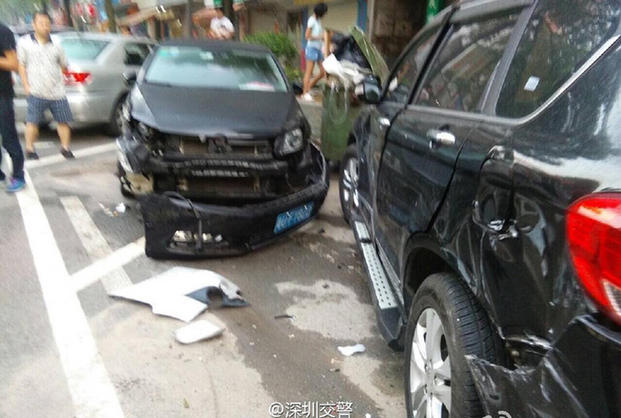 深圳司机在珠宝大厦路段撞毁5辆车后跑路 留下小舅子