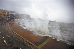 “海马”来袭,南澳双拥码头附近海域出现了大浪。深圳晚报记者黄铭 摄