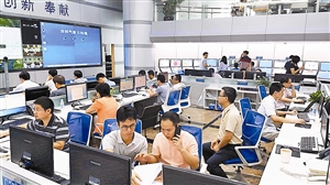 10月21日,气象局全员备战,肖小平(左一)与同事在观测、分析台风数据。 深圳晚报通讯员 刘洪涛 摄