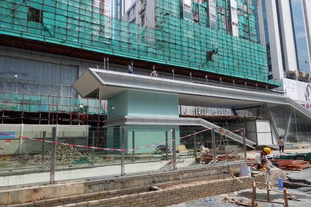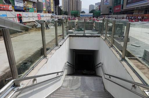 从地面施工状况来看,部分地铁出入口随时可以启用,另外一部分还在紧锣密鼓完善中。