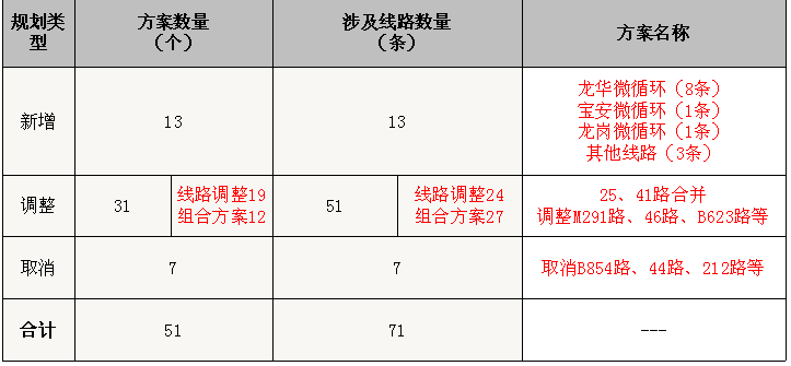 2016年第二批次公示方案 51个,其中,巴士集团24个;东部公交 7 个;西部公汽 20 个。共涉及线路 71条,解决了轨道三期线路接驳、宝龙片区、坂田片区、大浪三联片区、深圳湾口岸、锦绣观园、福安雅园、爱心家园等62处主要诉求区域出行问题。
