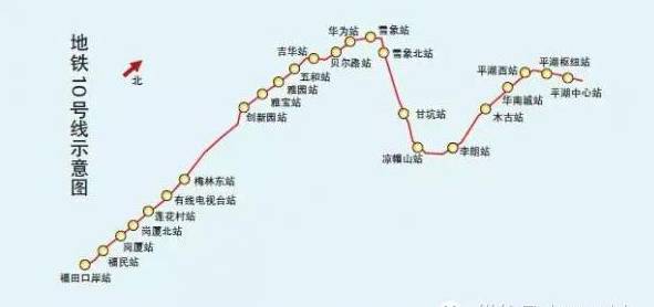 地铁10号线起自福田口岸,终到平湖中心站,是平湖第一条轨道线路,也是中部跨二线关一条重要的轨道线路。目前10号线已经进入主体施工阶段,预计2020年建成通车。