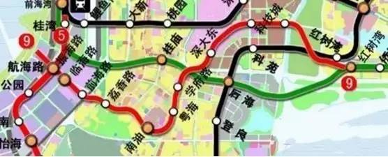 地铁9号线,共包括主要站点,红树湾南、深湾、深圳湾公园、下沙、车公庙、香梅、景田、梅景、下梅林、梅村、上梅林、孖岭、银湖、泥岗、红岭北、园岭、红岭、大剧院、鹿丹村、人民南、向西村、文锦等。
