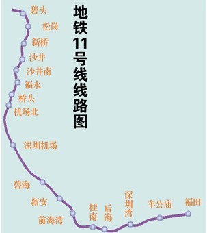 深圳地铁11号线将于今天开通,深圳地铁11号线全长51.9公里,东起福田枢纽,西止松岗碧头站,是目前国内一次建成线路最长、投资规模最大、设计时速最高的城市轨道交通线。