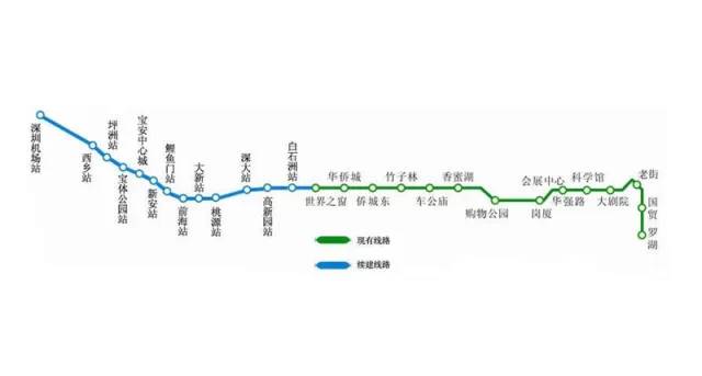 5号线南延线,是连接前海现代服务合作区和南山蛇口等地区,并通过已运营的线路连接至宝安、深圳北、布吉、罗湖的轨道干线,预计在2020年通车。