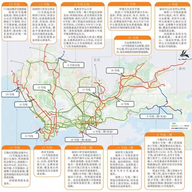 地铁14号线连接福田中心地区、布吉、横岗、大运新城、龙岗中心城、坪山新城中心地区以及坑梓,支撑整个东部发展轴,覆盖东部地区南北向交通需求走廊。