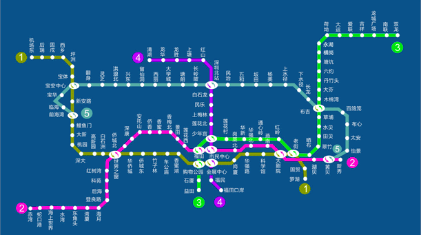 1、罗宝线 2、蛇口线 3、龙岗线 4、龙华线 5、环中线