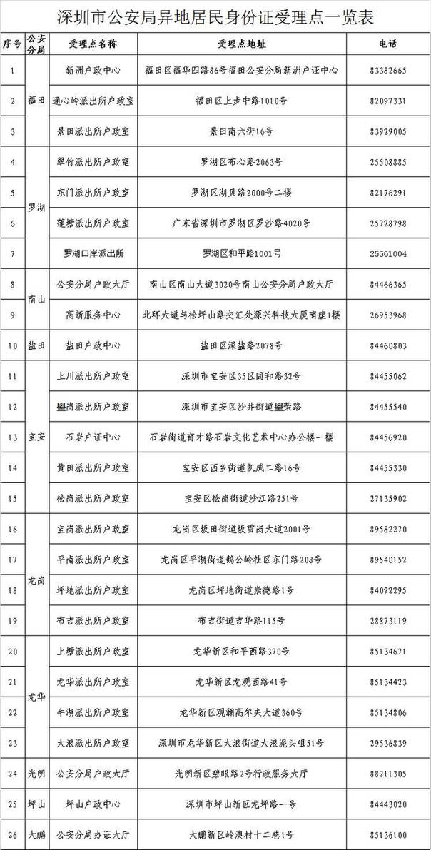 今日起深圳公安局推出省外户籍居民身份证异地受理、挂失申报和丢失招领便民服务新举措!