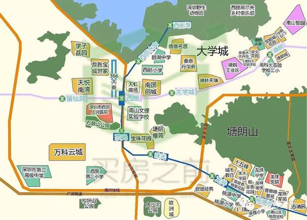 西丽可以大致分为留仙洞、大学城-动物园、龙珠-茶光、桃源四个片区