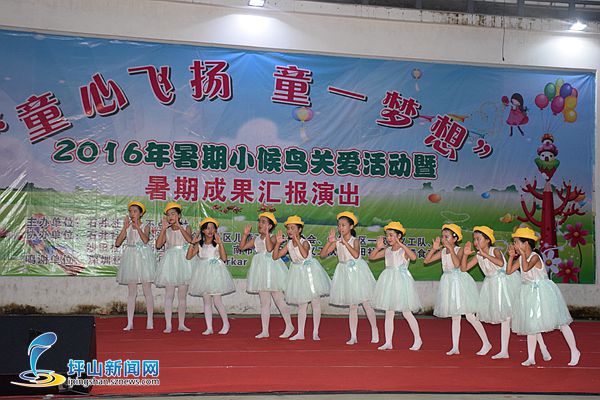 深圳新闻网坪山讯(记者 杨涛 通讯员 高人杰 阮阿萍)8月20日晚,由坪山新区社会建设局资助,石井社区小不点剧社主办,金龟社区儿童互助成长协会、龙田社区众人膳食工作坊等社会组织共同协办的“童心飞扬,童一梦想” 2016年暑期小候鸟关爱活动暨暑期成果汇报演出活动在龙田社区文化广场顺利开展。