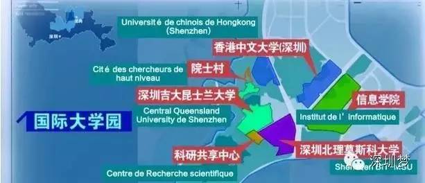 目前深圳已建成高校12所,正在筹建或者洽谈的高校有11所,包括中山大学·深圳、深圳北理莫斯科大学、深圳吉大昆士兰大学(暂名)、深圳墨尔本生命健康工程学院(暂名)、哈尔滨工业大学(深圳)国际设计学院、湖南大学罗切斯特设计学院、华南理工大学深圳特色学院等。其中半数以上将落户龙岗区龙城街道辖区的国际大学园。