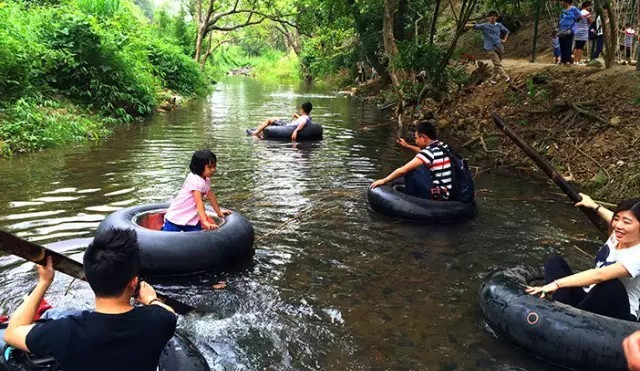 吃饱喝足还不够?约上三五好友,乘气胎去清澈见底的小溪里玩漂流吧~