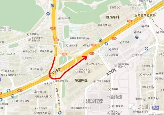 (二)需往笋岗物流园区的大型车辆,可以经泥岗/红岭立交北往东匝道进入泥岗路辅道通行;需往清水河的大型车辆,可以经泥岗/红岭立交北往东匝道东行至洪湖立交掉头通行。