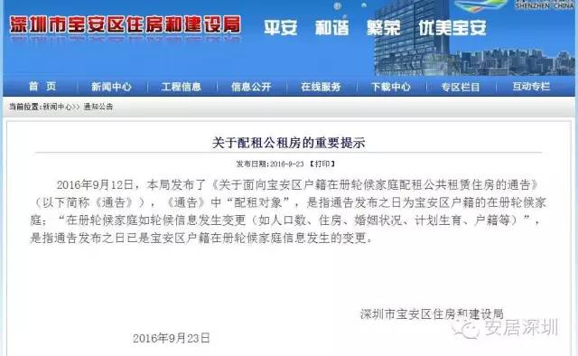3、宝安区住建局发布新政:公租房配租对象为通告发布之日为宝安户籍的轮候家庭!