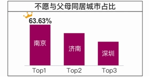 调研显示,大部分的单身男女都不介意与父母同住,但有超四成单身男女期望在婚后与父母各为其政。持“完全不能接受与父母同住”观点的人群中,南京单身男女比例最高,达63.63%,紧随其后的是济南和深圳。