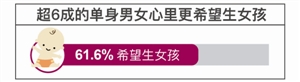 调研显示,81.06%的单身男女希望在婚后生育1~2个子女,但倾向于生育一个孩子的单身男女仍要比生育两个孩子的单身男女多。此外,女孩似乎变得更加受欢迎,超六成(61.6%)的单身男女更希望生女孩。