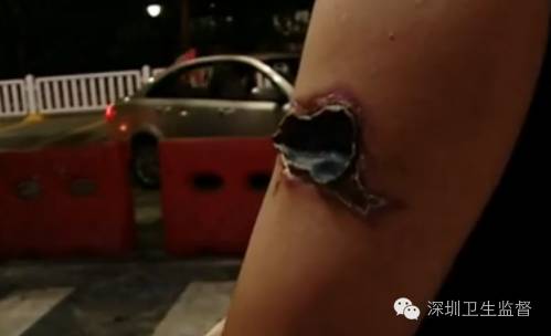 符先生“洗”完纹身后,美容店店员推荐他购买一份50元的消炎药,让他敷完药水后擦拭,符先生认为只是小伤便拒绝了。谁知“洗”完纹身后,开始几天还不痛不痒,10多天后纹身处伤口却惨不忍睹。