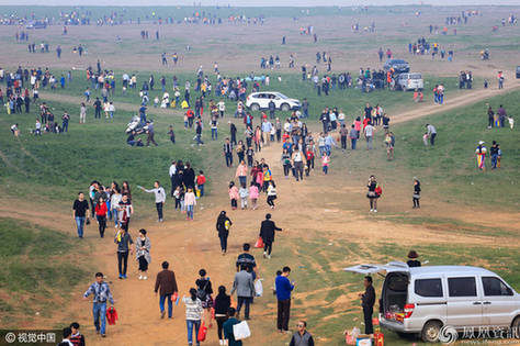 当日正值周末,九江地区附近上万市民蜂拥来到这里烧烤、野炊、自拍、晒太阳,享受持续阴雨天气后的暖阳时光。不少市民将汽车、摩托车开进“湖底”。