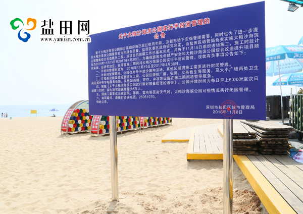记者获悉,目前,大梅沙海滨公园综合改造提升项目的前期工作已基本完成,并将于11月15日组织进场施工,施工时段计划为2016年11月15日至2017年4月30日。