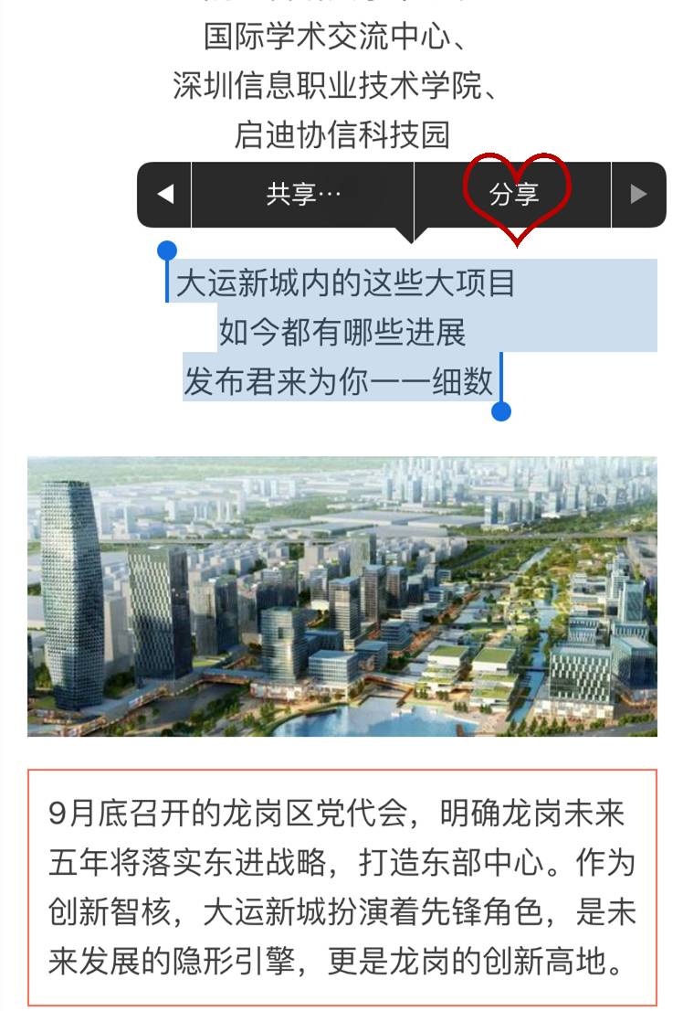 截取文章中的部分内容,选择“分享”。