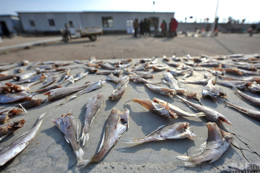 青岛民众晾晒腌制风味鱼干 成冬日特色风景