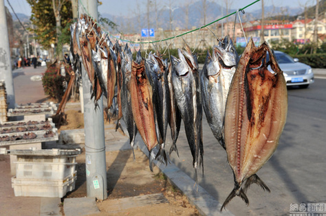 青岛民众晾晒腌制风味鱼干 成冬日特色风景