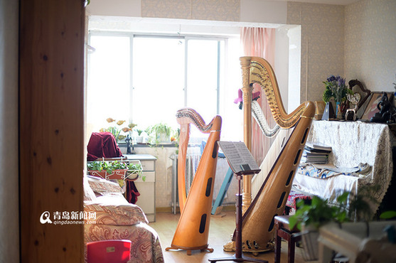在龙姑娘的工作室里,光竖琴就有三四台,其中小琴是给学生入门用的,价格比较便宜,而那台一人多高的大家伙才是真正的专业级竖琴,价格在十几万。