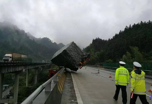 大货车失控挂30米高桥上 驾驶员命悬一线!