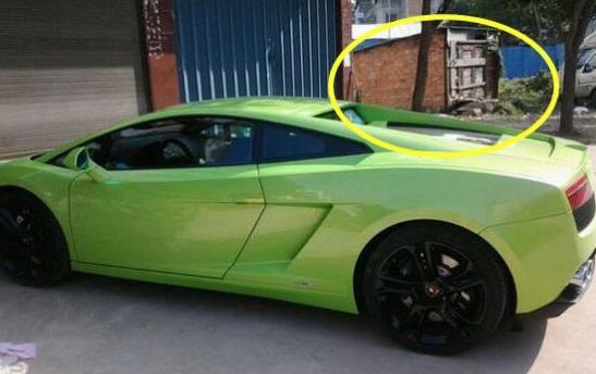 圈中部位的房子,相信大多数农村都有,可以用来存放柴杂物之类,隔壁停着一个兰博基尼,这就极少数了。