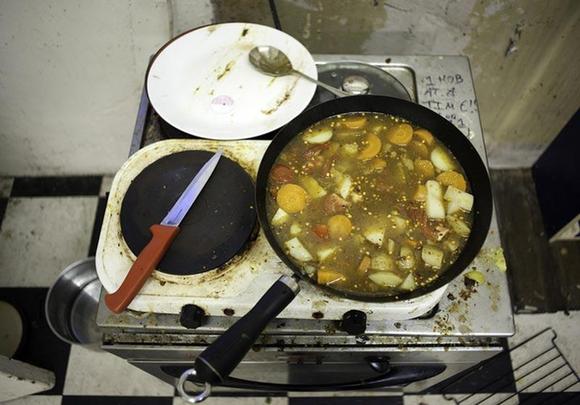 流浪汉的厨房,灶台上非常的脏。