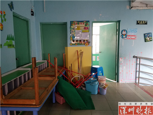 11月15日,在创业花园幼儿园内,园方相关负责人李女士正在低价处理一些蓝色的桌椅板凳。她告诉晚报记者,11月6日左右园方接到民治办事处执法队即将停水断电的通知,随后便通知了家长即将关园,并于11月12日退还了学生家长部分学费。