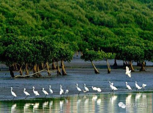 由于东南方香港大雾山减弱了海风的袭击,使得深圳湾红树林湿地成为鸟类理想的栖息地。